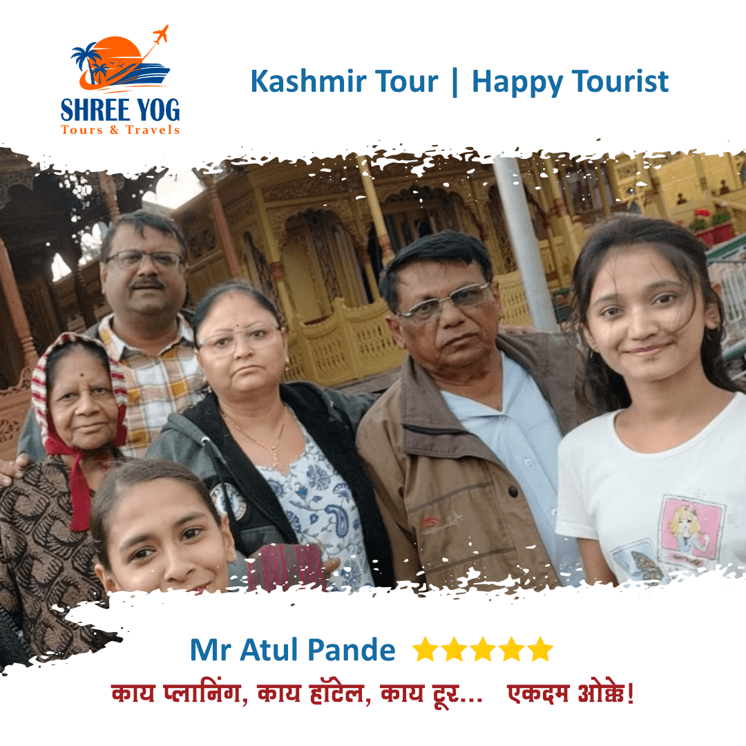 आमच्या पर्यटकांचा आनंद तुम्हीही प्रत्यक्ष पहा… धुळ्याचे श्री. अतुल पांडे यांनी आपल्या कुटुंबासह केलेल्या जम्मू-काश्मिर सहलीचे काही खास क्षण आमच्यासोबत शेअर केले आहेत.